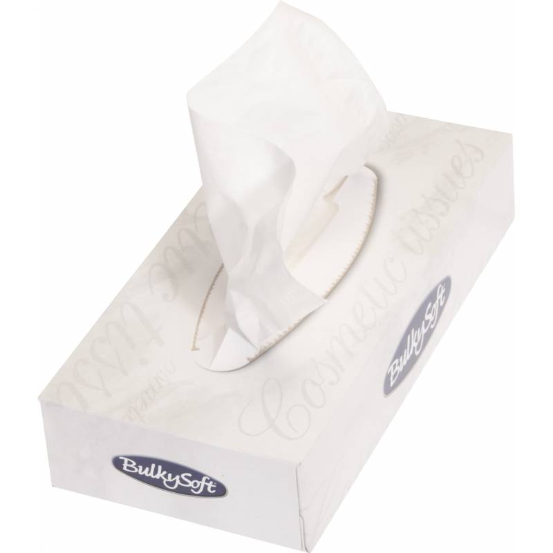 Mouchoirs blancs en boîte rectangle de 100, idéal pour tout milieu et facile d'utilisation. ECOLABEL